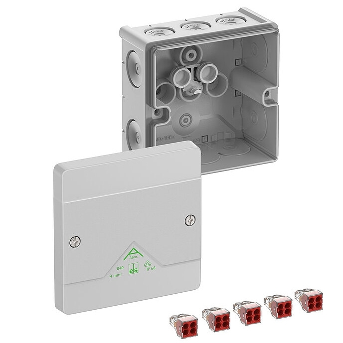 Krabice na omítku Abox 040-42 NEW se svorkovnicí 5x4x4mm2 IP66 102x102x57mm šedá
