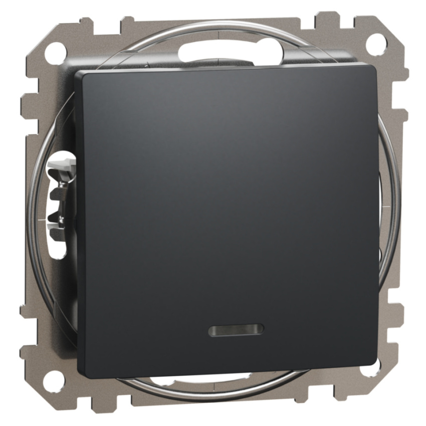 Tlačítko ř.1/0 s modrou orientační kontrolkou, v barvě antracit. 10 A - 250 V ∿