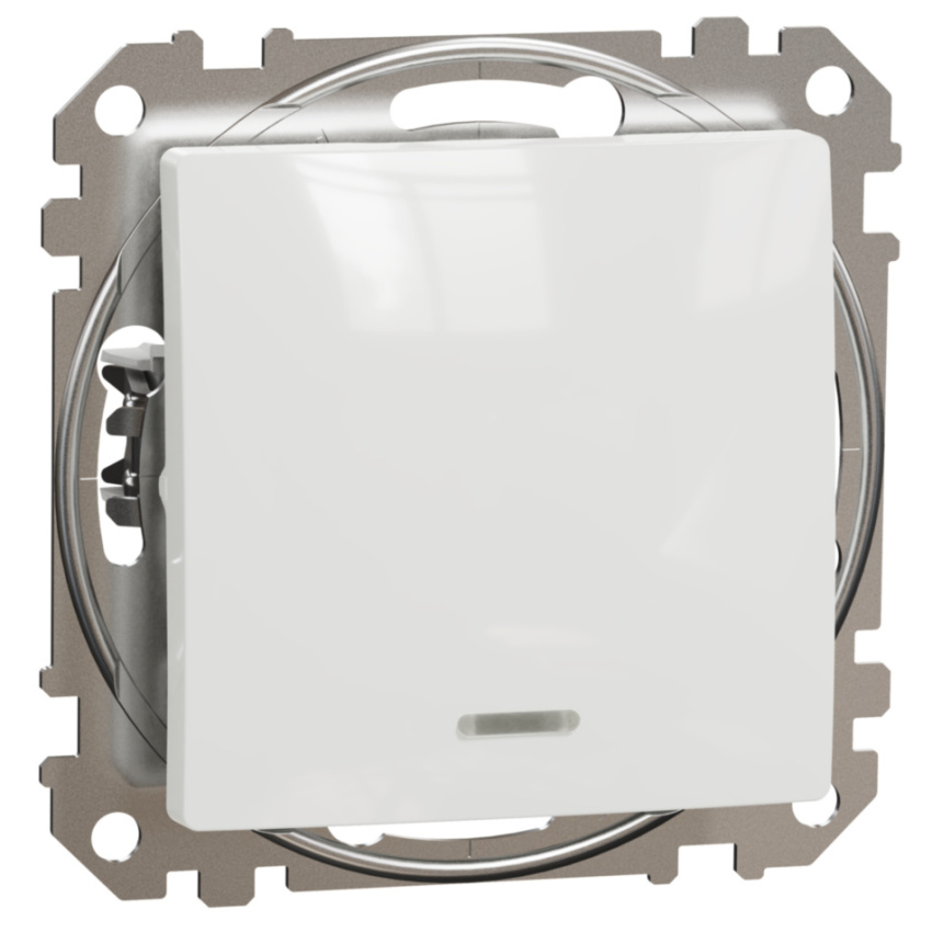 Jednopólový Spínač ř.1 s modrou orientační kontrolkou, v bílé barvě. 10 AX - 250 V ∿