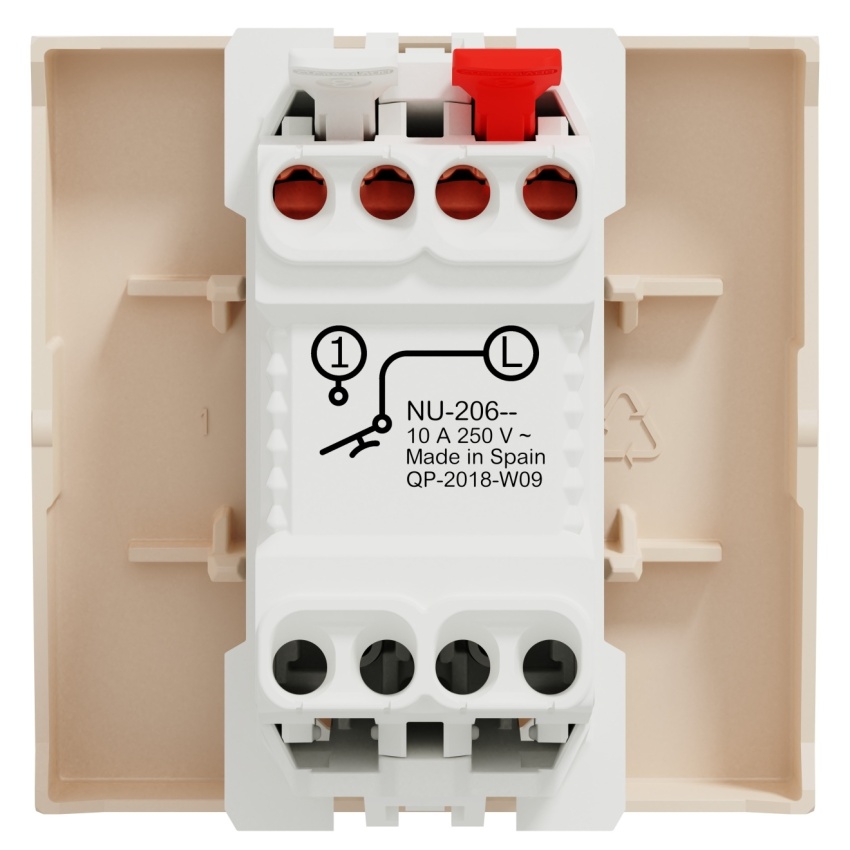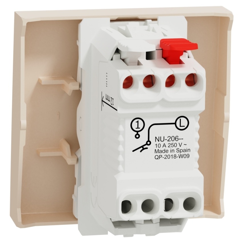 Tlačítko 1/0 NU320644 bez symbolu, bezšroubový v béžové barvě.