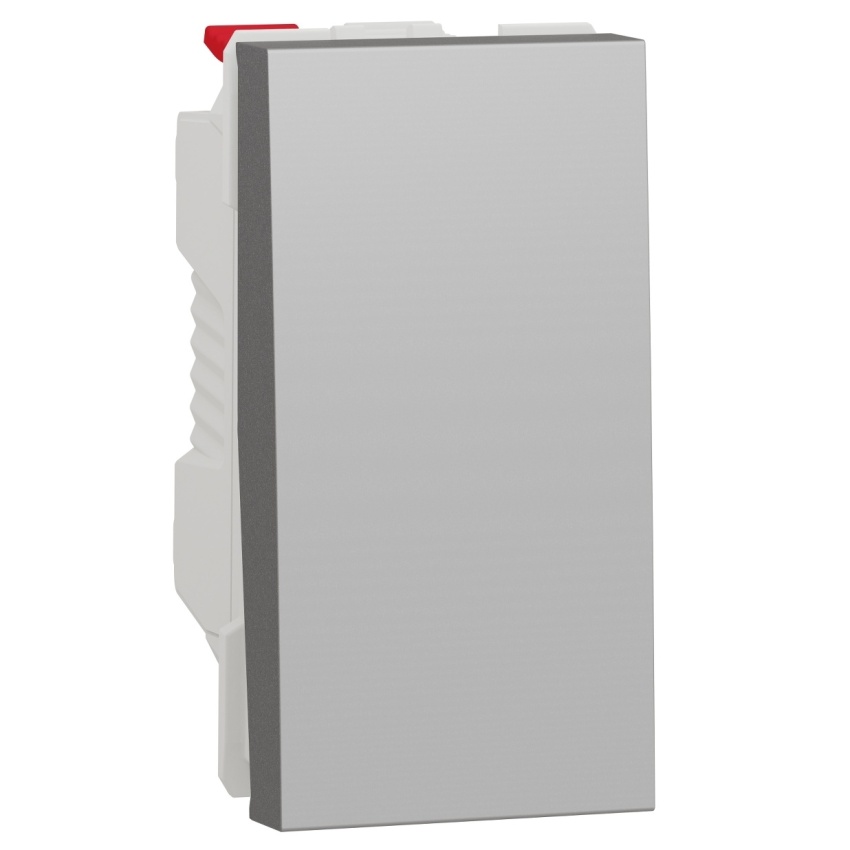 Jednopólový Spínač ř.1 NU310130, bezšroubový v barvě aluminium.