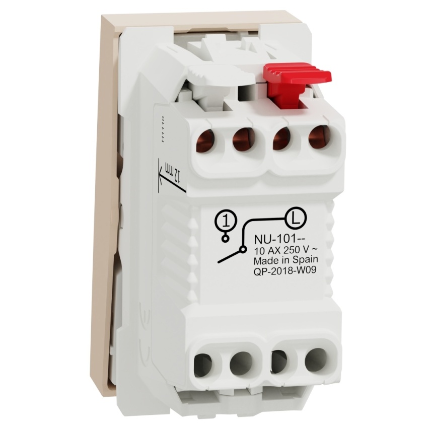 Jednopólový Spínač ř.1 NU310144, bezšroubový v béžové barvě.