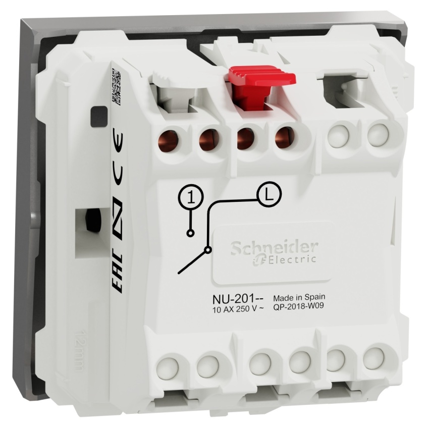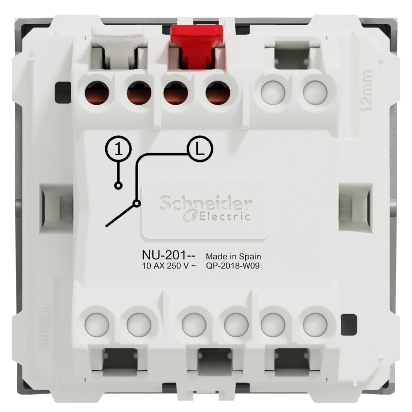 Spínač ř.1 NU320130, bezšroubový ve barvě aluminium.