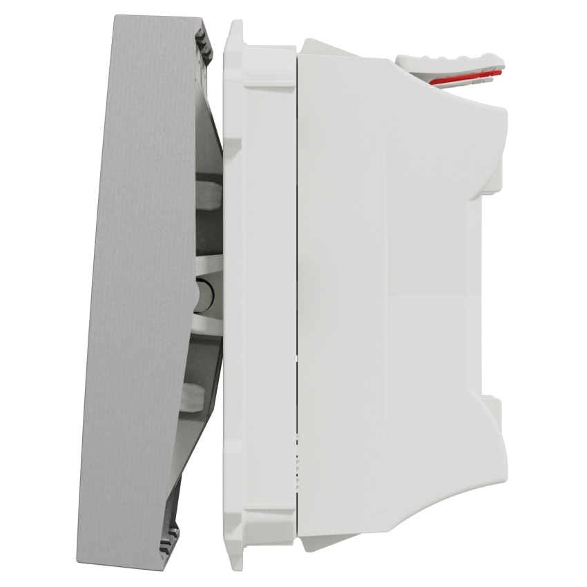 Sériový Spínač ř.5 NU321130, bezšroubový v barvě aluminium.