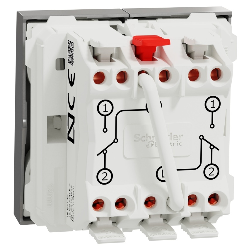 Dvojitý střídavý Přepínač ř.6+6 NU321330, bezšroubový v barvě aluminium.