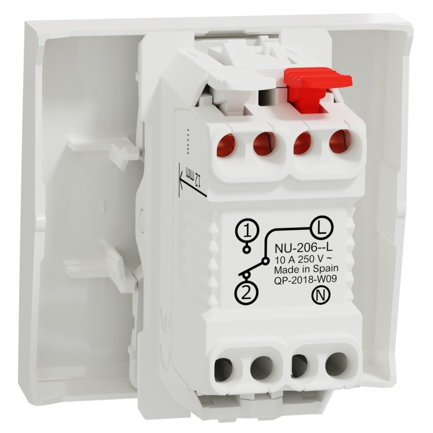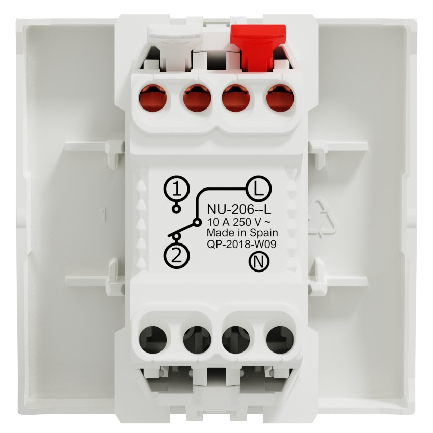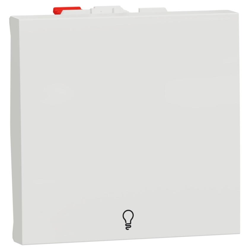 Tlačítko ř.1/0 NU320618L se symbolem světla, bezšroubový v bílé barvě.