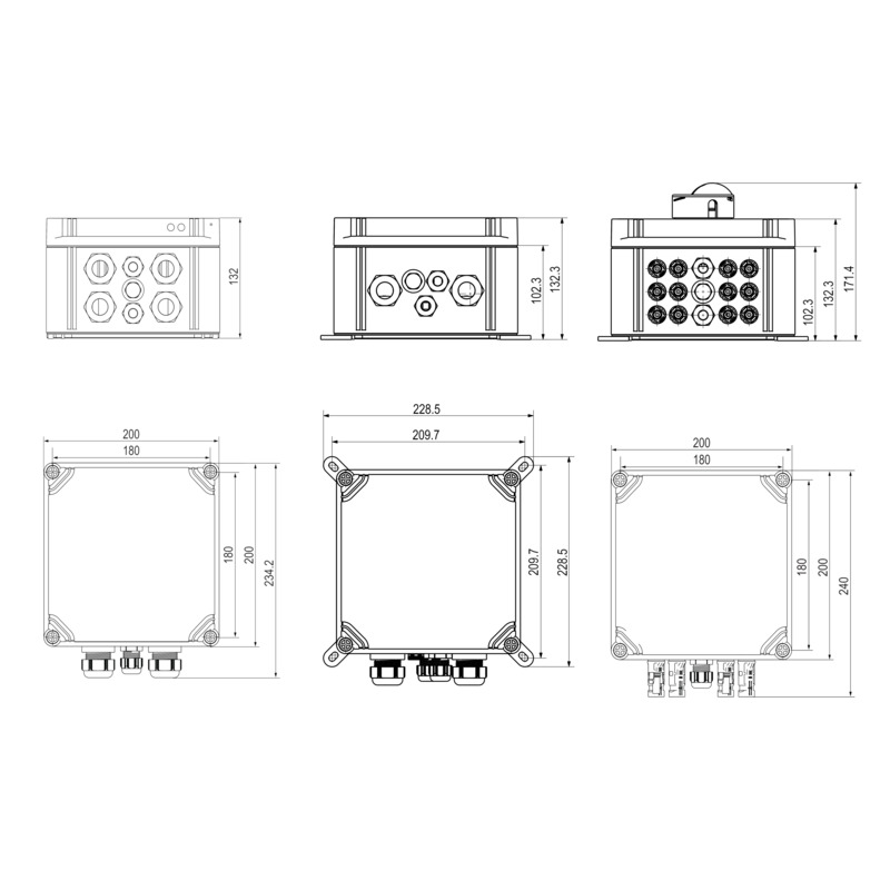Fotovoltaika, Kombinovaná skříň, 1100 V, 2 MPP, 2 vstupy / 1 výstup na MPP, Přepěťová ochrana I / II, WM4C