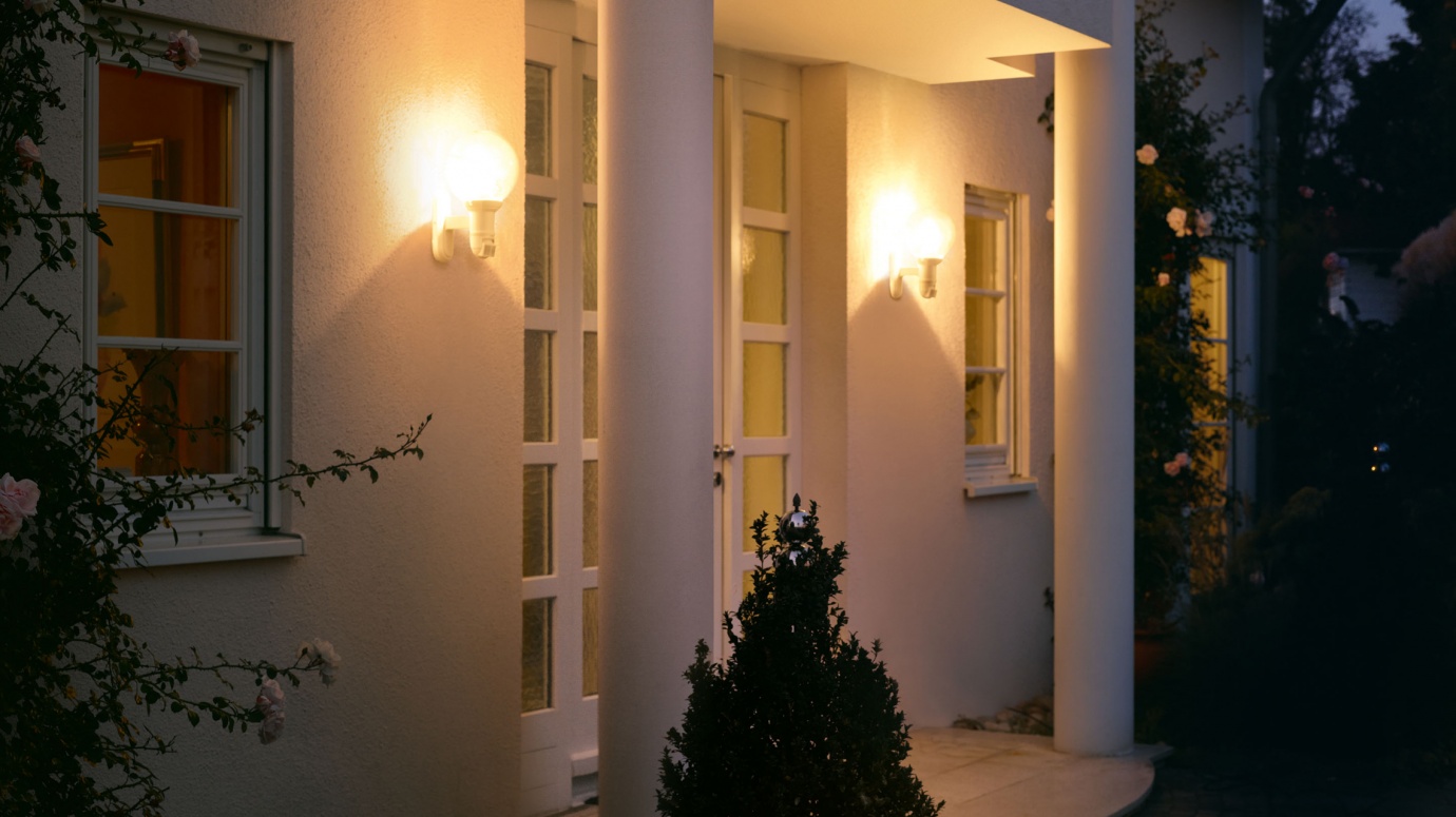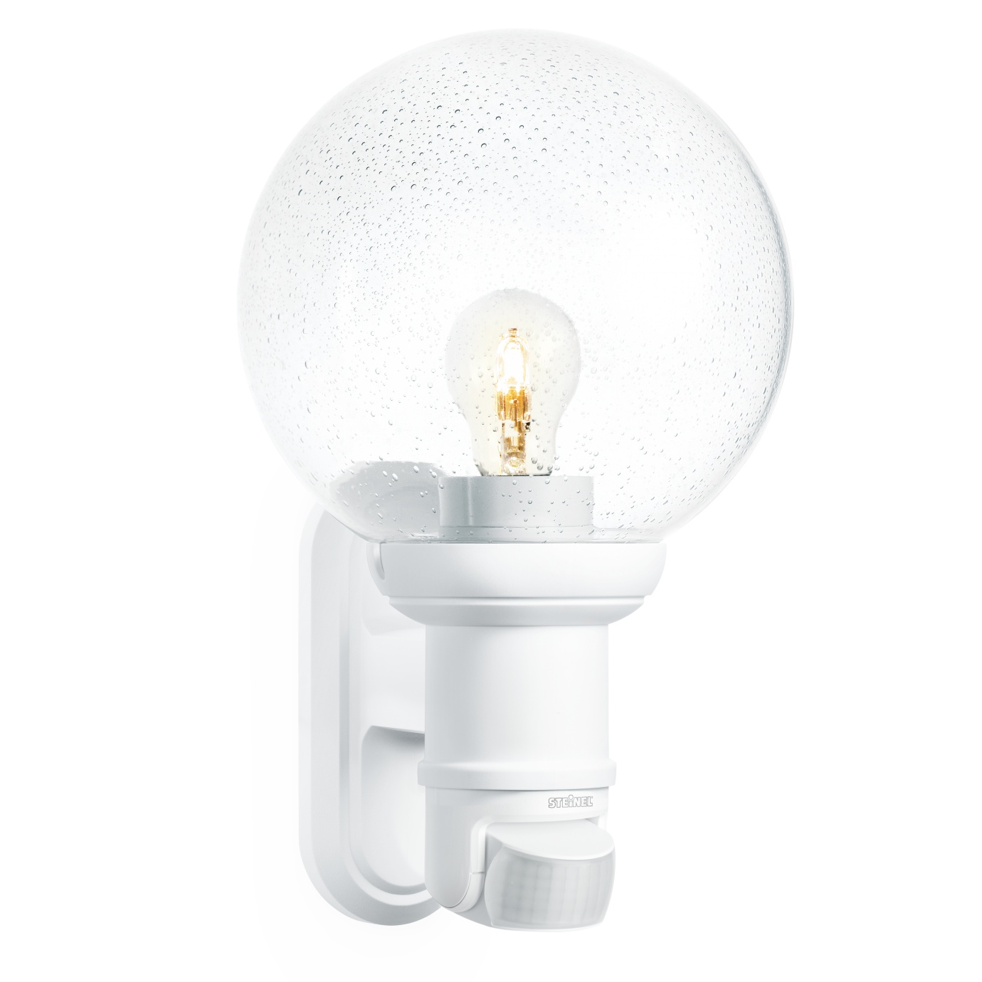 Klasický design koule. Venkovní SensorLight L 560 S, ideální pro průčelí a vchody budov, úhel pokrytí 140°, dosah až 12 m, volitelný čas a práh soumraku, senzor se naklání o 70° a otáčí o 130° pro přesné nastavení detekční zóny.< /p>