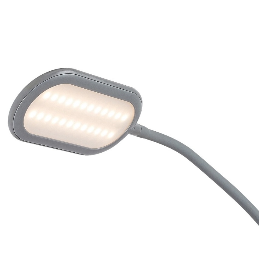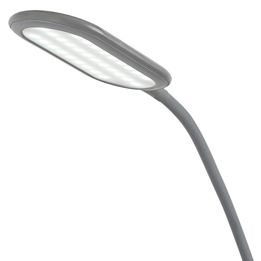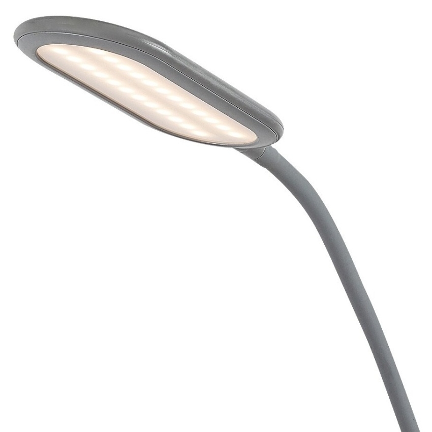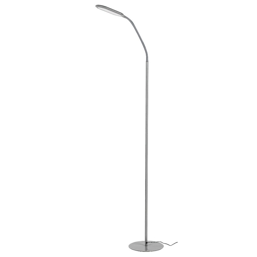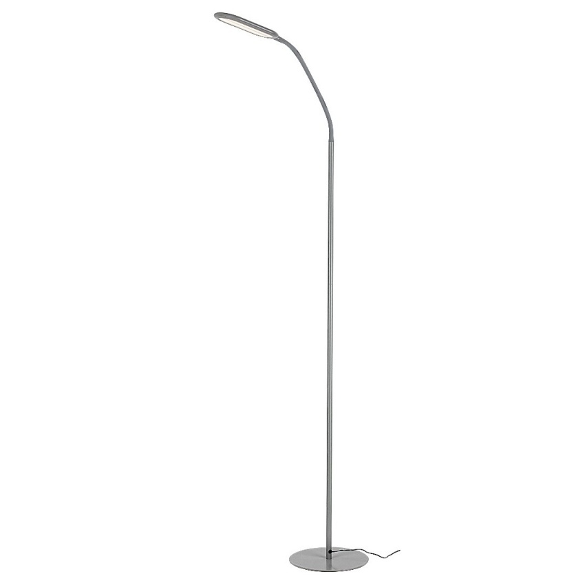 Stojící lampa Adelmo je díky svému jednoduchému, čistému designu a extra funkcím skvělou volbou téměř do každého moderního obývacího pokoje. Díky malé náročnosti na prostor lze bez problémů umístit i do méně prostorné místnosti. Model vyrobený z kovu v šedé barvě se vyznačuje štíhlým, zakřiveným stonkem a zcela plochou hlavou lampy, která zboku vypadá téměř jako rovné prodloužení stonku. Svítilna je doplněna o bílé plastové stínítko a kulatý ozdobný podstavec. Adelmo má zabudovaný LED světelný zdroj s výkonem 10 W, svítivostí 910 lumenů a životností 20 000 hodin. Teplotu barvy světelného zdroje lze pomocí dotykového spínače nastavit v rozmezí 3000-6000 K, t.j. svítidlo může svítit teplým, přirozeným nebo studeným bílým světlem. Stojací lampa je 430 mm široká, 1400 mm vysoká a 1800 mm dlouhá.
