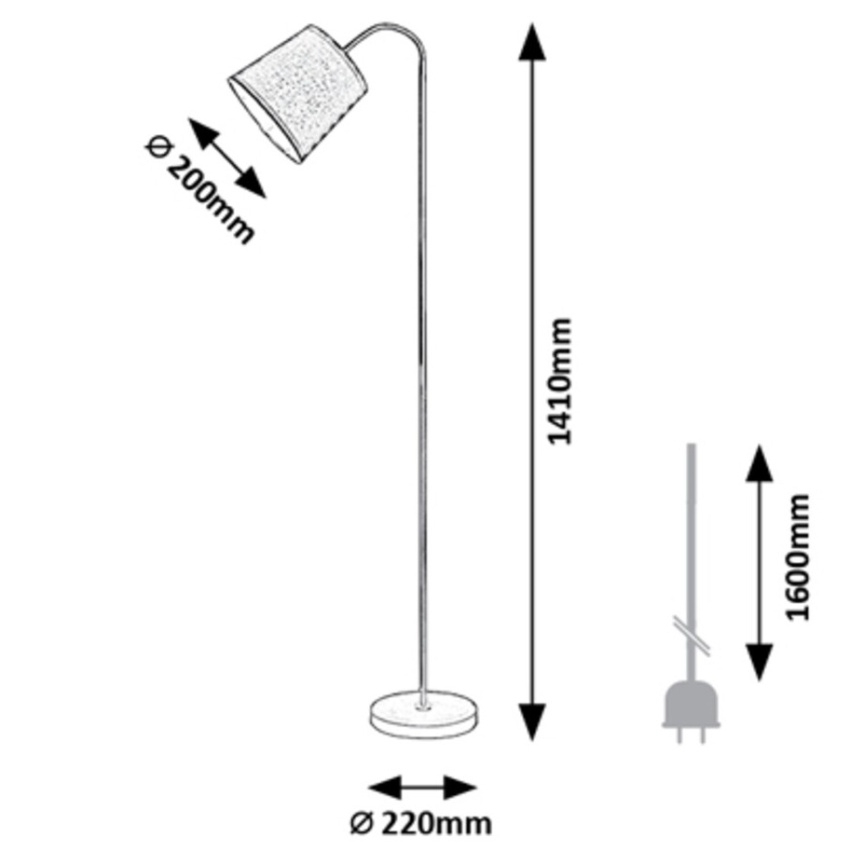 Stojící svítidlo Godric bude stylovým kouskem zařízení vašeho moderního obývacího pokoje, ložnice nebo pracovny. Tento model připomínající nadrozměrnou lampu na čtení je vyroben s černým kovovým držákem a ozdobnou základnou a černým stínítkem vyrobeným z textilu. Svítidlo Godric lze použít s jednou žárovkou o výkonu až 25W. Typ patice je E27. Pokud svítidlo umístíte do ložnice, doporučujeme žárovku vyzařující teplé bílé světlo, které vám pomůže vytvořit útulnou, intimní atmosféru. Na druhé straně, pokud jej používáte ke čtení nebo práci, přirozené bílé světlo může být prospěšnější. Rozměry tohoto stojícího svítidla jsou následující: výška 1410 mm, průměr stínítka 200 mm, průměr ozdobné základny 220 mm. Tento model je dodáván bez světelného zdroje.