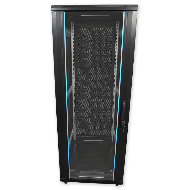 Stojanový rozvaděč PSD má osazené přední skleněné dveře a zadní dveře perforované rovné. Rozvaděč je určený pro instalace, kde je požadovaný rychlý přehled o stavu uvnitř umístěných zařízení. Při zvýšených nárocích na ventilaci je možné horní kryt rozvaděče osadit ventilační jednotkou. Kombinace předního skla a zadní perforace zajišťuje pro nucené chlazení optimální proudění vzduchu celým tělesem rozvaděče. Odnímatelné bočnice i dveře umožňují pohodlný přístup do rozvaděče během instalace. Na konstrukci rozvaděče jsou použity plechy 2,0, 1,5 a 1,2 mm, což zajišťuje vysokou pevnost a dostatečnou tuhost celé konstrukce.