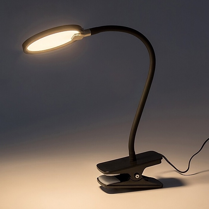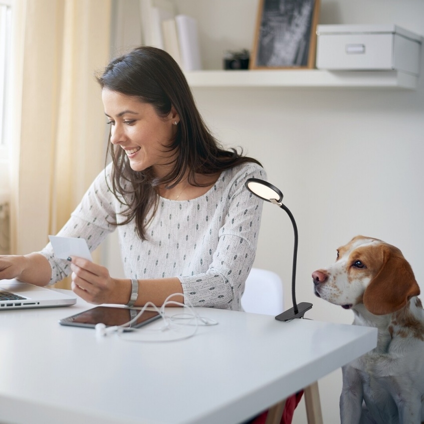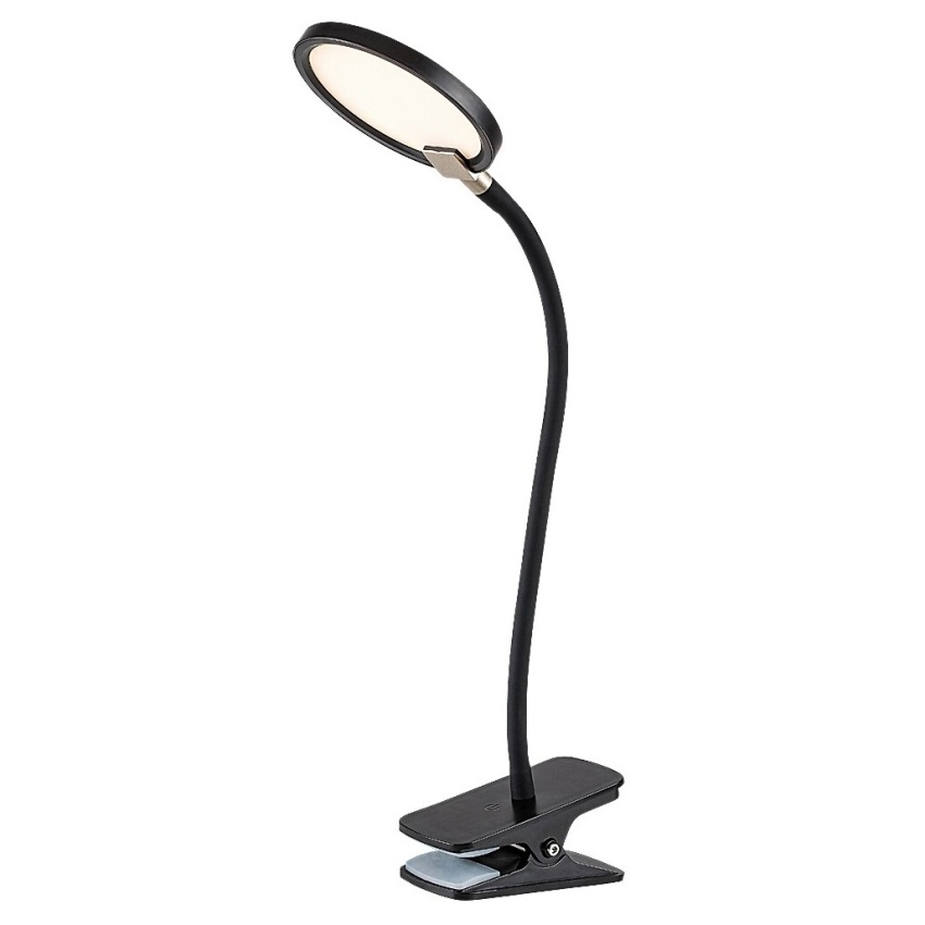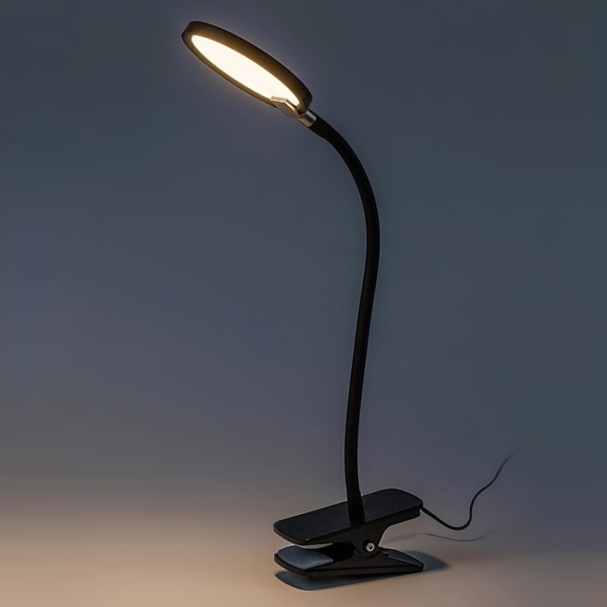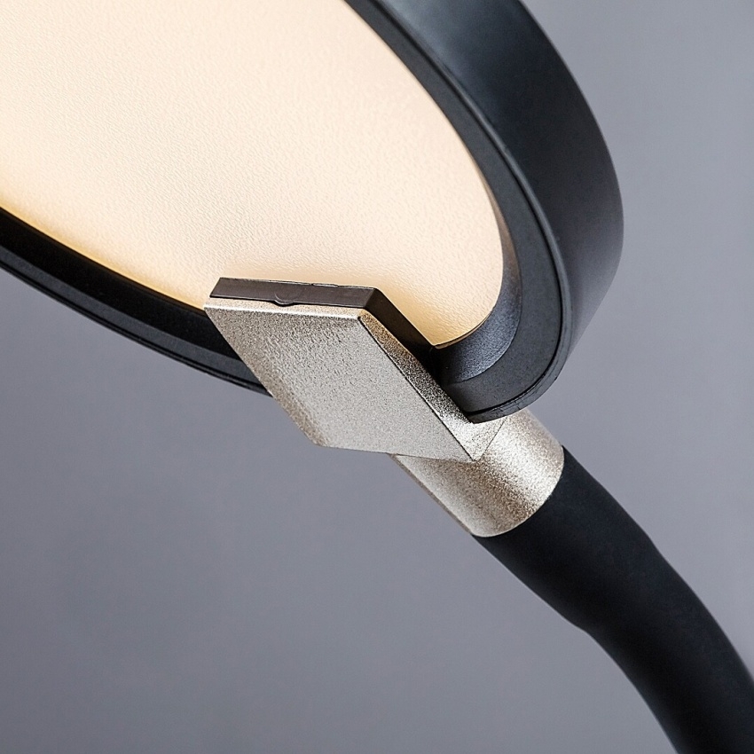 Marcin - Inteligentní stolní lampa Marcin v moderním stylu je skvělou volbou do obývacího pokoje, ložnice nebo pracovny. Model je celý vyroben z plastu a je doplněn zahnutou stopkou a hlavou lampy ve tvaru disku s bílým stínítkem. Díky klipsovému řešení je toto svítidlo velmi mobilní: lze jej namontovat nejen na stůl, ale také na police a kdykoli přemístit.