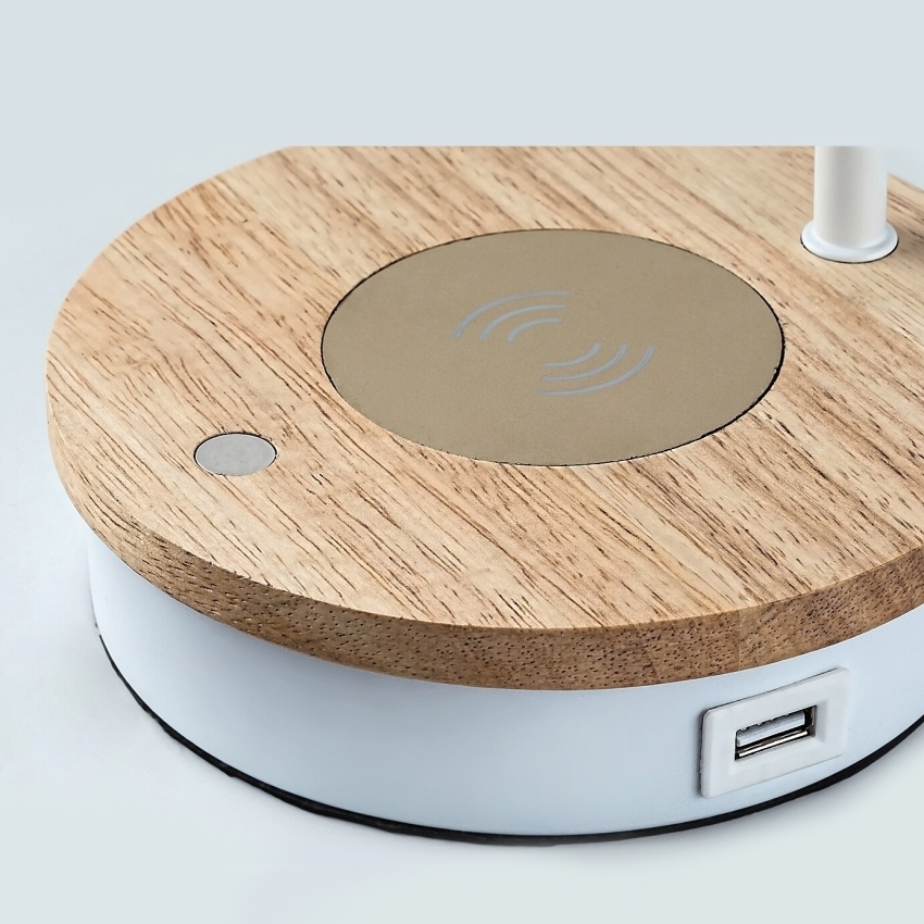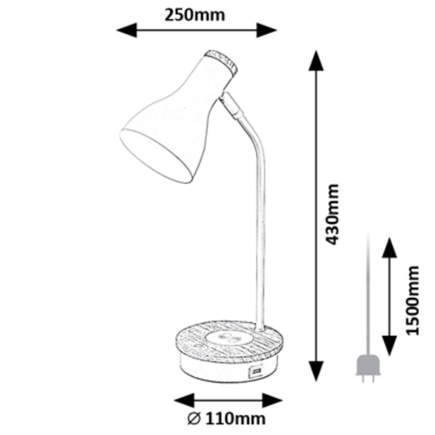 Stolní lampa Mosley v moderním stylu se svým elegantním přírodním vzhledem může být vhodnou volbou na pracovní stůl mnoha pracoven nebo dětských pokojů. Matně bílý model z kovu a dřeva doplňuje štíhlý zakřivený stonek, dolů se rozšiřující válcové stínidlo a ozdobná základna s dotykovým vypínačem. Mosley lze použít s jedním světelným zdrojem o výkonu až 25 W, patice typu E14. Pro práci a studium doporučujeme zdroj studeného bílého světla, který pomáhá udržet koncentraci. Svítilnu lze pomocí dotykového spínače stmívat, tedy regulovat její jas (30, 60 nebo 100 %). Mosley má také bezdrátovou nabíječku a USB port, kterým lze nabíjet například náš mobilní telefon. Rozměry stolní lampy jsou následující: šířka 250 mm, výška 430 mm, průměr 110 mm, délka kabelu 1500 mm. Tento model je dodáván bez světelného zdroje.