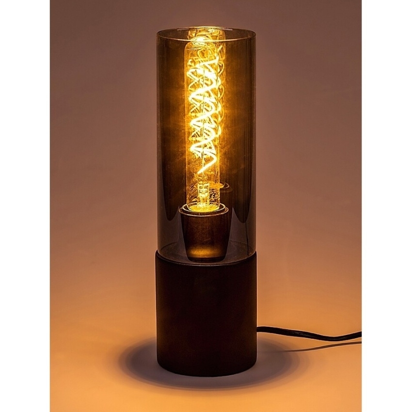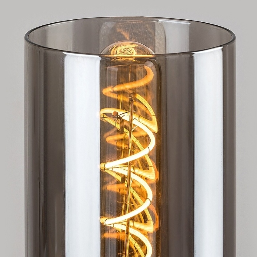 Stolní lampa Ronno v moderním stylu může být útulným kusem nábytku v obývacím pokoji nebo ložnici. Díky malé náročnosti na prostor lze snadno umístit na noční stolek nebo na nižší stolek. Černá lampa vyrobená z kovu je doplněna o cylindrické, barevné skleněné stínítko, přes které až podezřele filtruje světlo zevnitř lampy. Ronno se spínačem lze použít s jedním světelným zdrojem o výkonu až 25 W, objímka typu E27. K tomuto modelu se nejvíc hodí světelný zdroj s teplým bílým světlem, který pomáhá vytvářet v místnosti domácí, intimní atmosféru. Rozměry stolní lampy: průměr 90 mm, výška 295 mm, délka kabelu 1500 mm. Tento model je dodáván bez světelného zdroje.