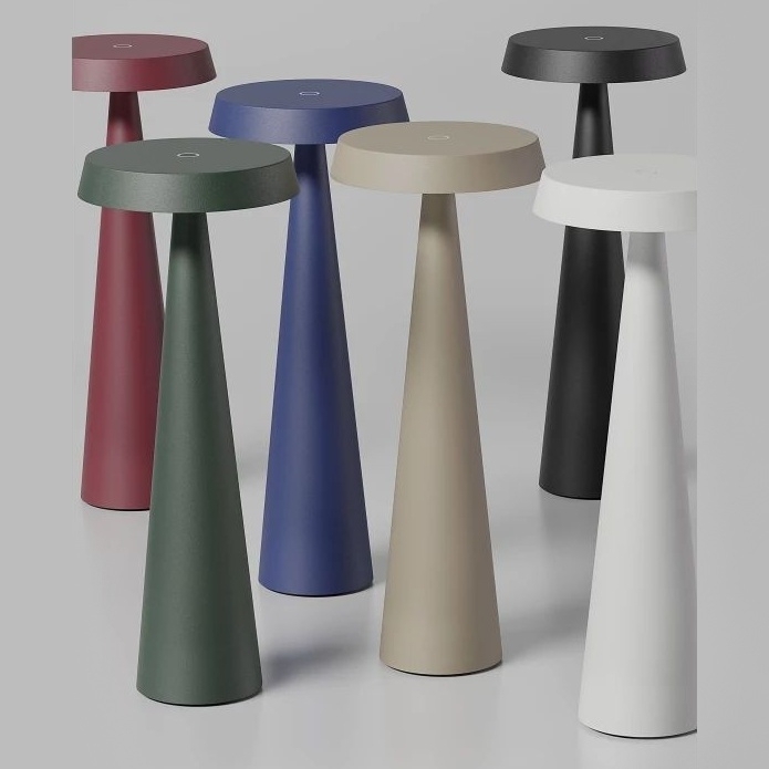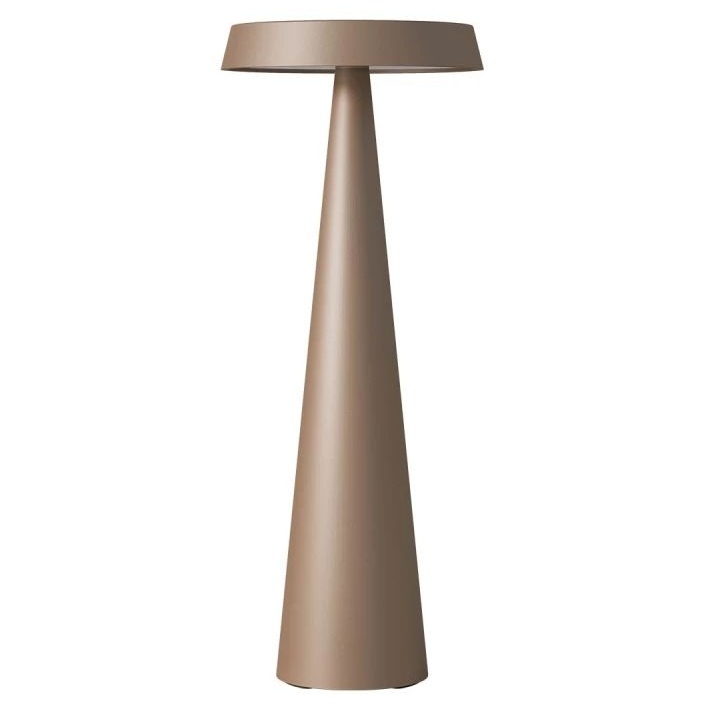 Exteriérová stolní lampa TAO od výrobce REDO zaujme svým originálním designem. Lampa je vybavena integrovaným LED zdrojem a má konstrukci z tlakově litého hliníku, dostupnou v šesti matných barvách (bílá, šedo-béžová, zelená, modrá, fialově červená a černá). Průhledný polykarbonátový difuzor zajišťuje příjemné rozptýlené světlo.