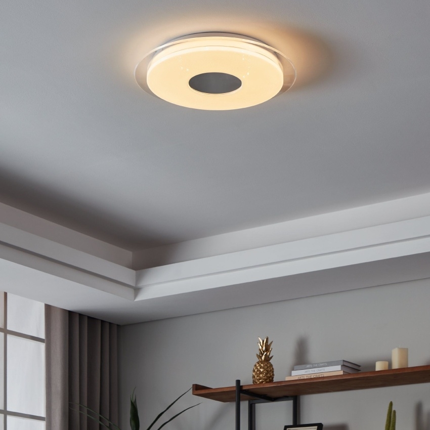 Středně velké kulaté LED stropní svítidlo v kombinaci chromu, čirého skla a křišťálového efektu. Působí moderně a zároveň elegantně. Stejně jako ostatní svítidla z řady EGLO CONNECT jej lze řídit pomocí dálkového ovladače a aplikací. Můžete měnit barvu světla a také teplotu bílé barvy od teplé, přes neutrální, po studenou.