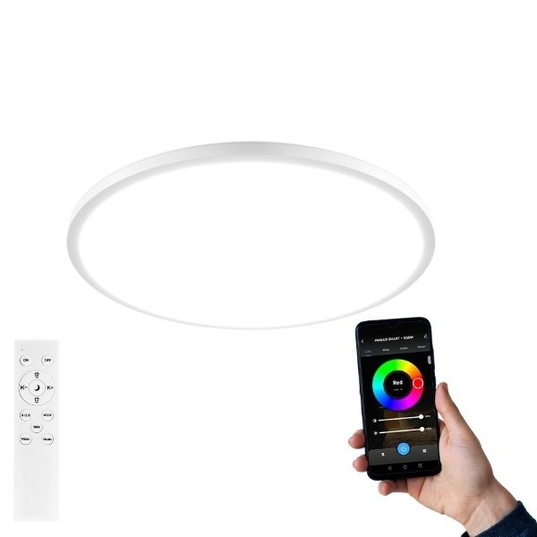 Toto LED svítidlo kruhového tvaru disponuje nejen možností volby intenzity a teploty světla od teplé, přes neutrální až do studené bílé (3000-6500K), ale také RGB podsvícením na jeho vrchní části. Oba zdroje světla můžete užívat nezávisle na sobě.