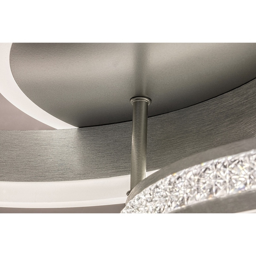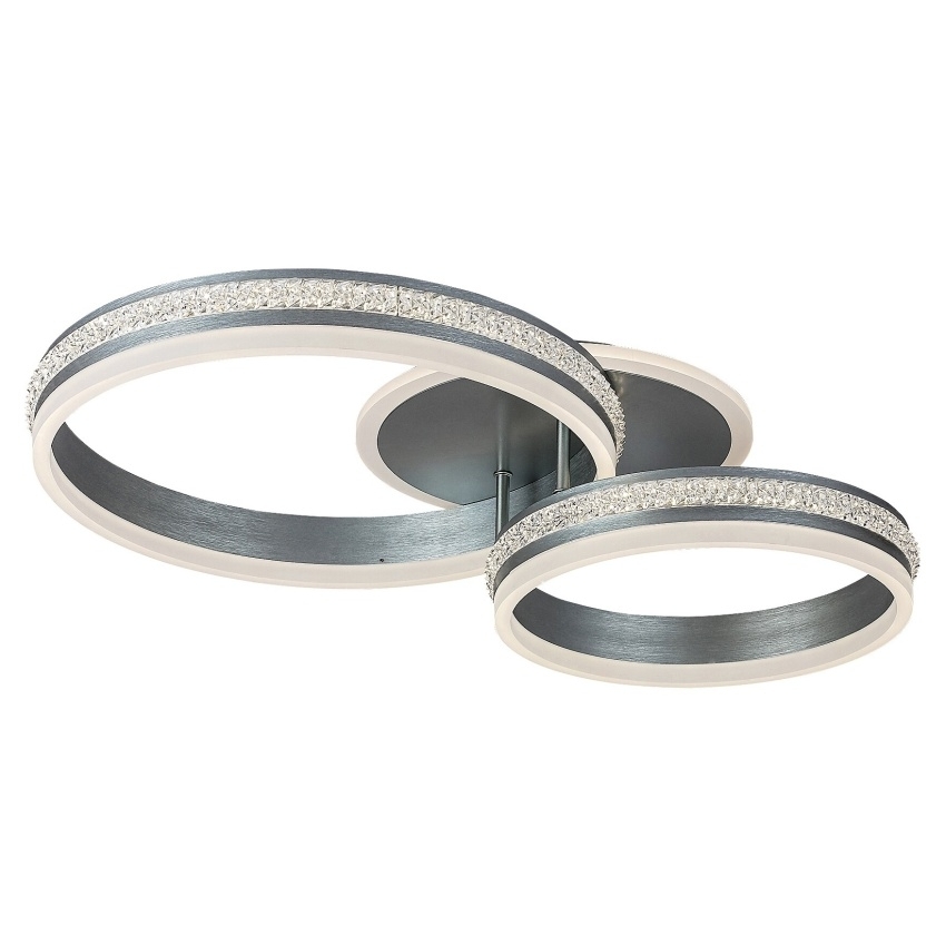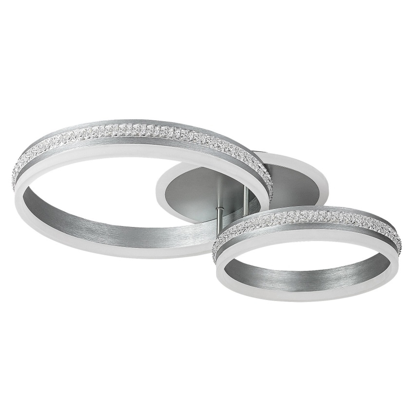 Minimalistické stropní svítidlo Avalon bude výjimečným doplňkem k zařízení vašeho obývacího pokoje, jídelny nebo ložnice. Kovové svítidlo v barvě broušeného hliníku je doplněno o bílá akrylová stínítka a svítidlo lze upevnit na strop pomocí kulaté dekorativní základny. Zajímavý charakter dodávají svítidlu Avalon dva prstencové prvky, které jsou kolem dokola zdobeny křišťálovým zdobením. Toto stropní svítidlo obsahuje vestavěný LED světelný zdroj s výkonem 50W, světelným tokem 3150 lumenů a životností 20 000 hodin. Svítilna s barevnou teplotou 4 000 K vyzařuje přirozené bílé světlo. Rozměry svítidla Avalon jsou následující: šířka 650mm, vzdálenost od stropu 150mm, instalační průměr 190mm. Na tento vynikající model poskytujeme 5letou záruku.