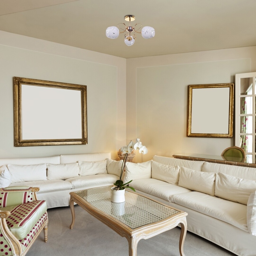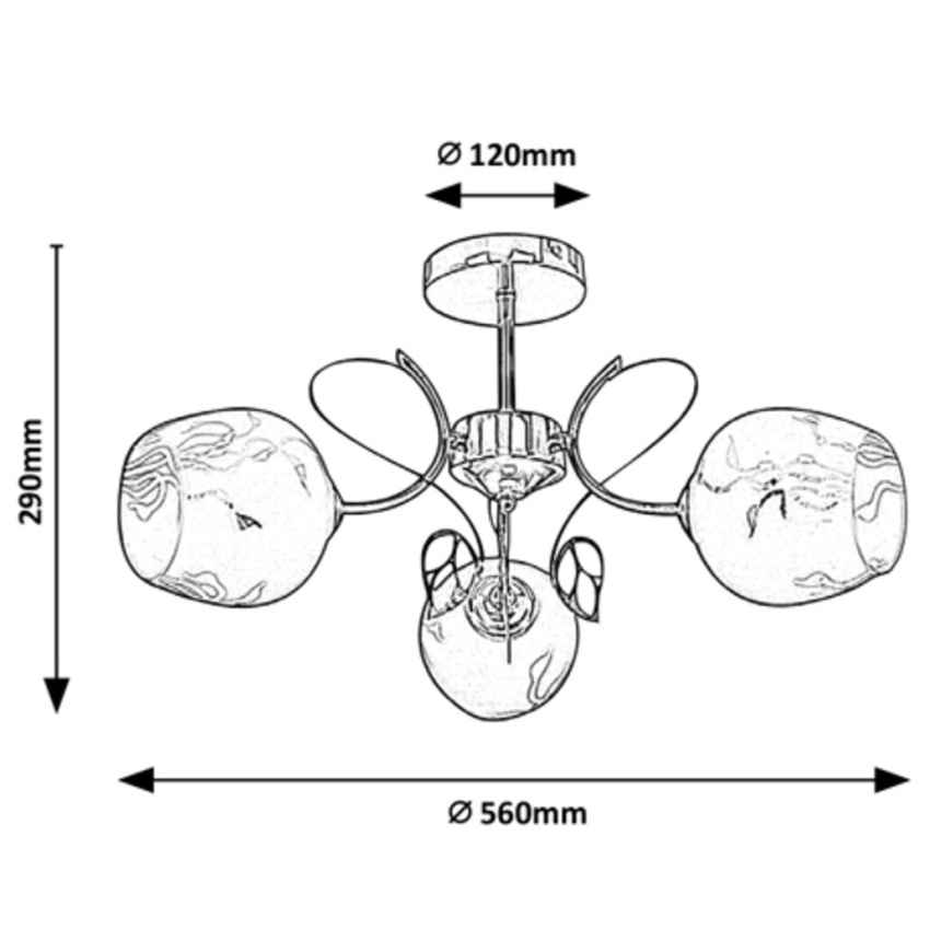 Trojité stropní svítidlo Fauna v klasickém stylu bude elegantním doplňkem k zařízení vašeho tradičního obývacího pokoje nebo ložnice. Stínidla z bílého skla se vzorem jsou připevněny ke zlatému kovovému svítidlu. Svítidlo lze připevnit na strop pomocí kulatého ozdobného podstavce. Kulaté stínidla s otevřeným dnem jsou připevněny k větvím světla, které se kroutí jako úponky a jsou zdobeny zlatými listy. Svítidlo Fauna může být použito se třemi žárovkami, každá s výkonem až 40W. Typ patice je E27. Pokud chcete vylepšit intimní a útulnou atmosféru, vyberte si pro toto svítidlo žárovky s teplým bílým světlem. Rozměry trojitého stropního svítidla Fauna jsou následující: průměr 560 mm, vzdálenost od stropu 290 mm, instalační průměr 120 mm. Tento model se dodává bez světelných zdrojů.