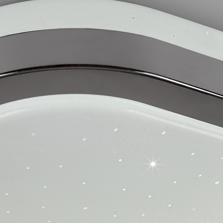 Díky svému čistému designu a všestrannosti bude hranaté stropní svítidlo Linden s hvězdným efektem skvělou volbou do vašeho moderního obývacího pokoje nebo ložnice. Kovové svítidlo v chromové barvě se zaoblenými rohy je doplněno bílým plastovým stínidlem. Toto stropní svítidlo obsahuje vestavěný zdroj světla LED s životností 25 000 hodin, výkonem 72 W, světelným tokem 5800 lumenů a teplotou barvy, kterou lze nastavit v rozmezí 3 000-6 500 K pomocí nástěnného vypínače nebo dálkového ovladače. Svítidlo Linden lze také ztlumit, to znamená, že jeho jas lze měnit podle potřeby pomocí dálkového ovladače. Mezi další doplňkové funkce patří paměťová funkce, časovač a funkce nočního světla. Rozměry inteligentního svítidla Linden: 455 x 455 mm, vzdálenost od stropu 75 mm.