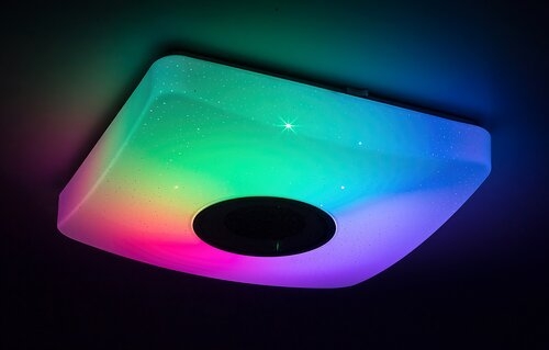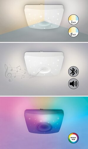 Stropní svítidlo Murry v moderním stylu s hvězdným efektem bude perfektní volbou v obývacím pokoji, ložnici nebo dětském pokoji. Bíle zbarvený model, který je vyroben z kovu a akrylu se zaoblenými rohy, má mnoho zvláštností. Svítidlo obsahuje zabudovaný LED světelný zdroj s výkonem 18W a světelným tokem 1 350 lumenů. Životnost inteligentní žárovky je celkem fantastická: 50 000 hodin! Svítidlo Murry je stmívatelné, to znamená, že jas lze měnit podle přání. Také je možné nastavit jeho barevnou teplotu mezi 3000-6000K. Obě funkce lze ovládat pomocí dálkového ovladače. Můžete také nastavit osvětlení RGB, což znamená, že můžete měnit barvy. Mezi další doplňky patří funkce dálkového ovládání paměti, časovač a funkce nočního osvětlení. To však není všechno: svítidlo má také zabudovaný reproduktor, který lze ovládat přes Bluetooth. Rozměry stropního svítidla jsou 365x365mm, vzdálenost od stropu je 90mm.