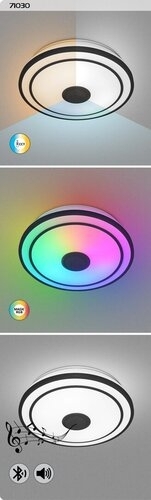 Kulaté stropní svítidlo Nikolaus se třpytivým efektem je inteligentní svítidlo, které splňuje všechny potřeby a zaujme své místo v každém moderním obývacím pokoji nebo ložnici. Černý model vyrobený z kovu je doplněn bílým plastovým stínítkem a má zabudovaný LED světelný zdroj energetické třídy G, který má výkon 24 W, svítivost 1600 lumenů se stínítkem, 2400 lumenů bez stínítka, a mimořádnou životnost: 50 000 hodin! Barevnou teplotu lampy lze nastavit v rozmezí 3000-6500 K, tzn. může svítit teplým, přirozeným nebo studeným bílým světlem. Mezi další doplňky patří nastavitelný jas, RGB osvětlení, paměť, časovač a noční funkce. A to není všechno: Nikolaus má také reproduktor, který lze ovládat přes Bluetooth! Funkci paměti lze ovládat pomocí spínače nebo dálkového ovladače, zatímco ostatní doplňkové funkce lze ovládat pomocí dálkového ovladače. Průměr stropního svítidla je 395 mm a vzdálenost od stropu 90 mm.