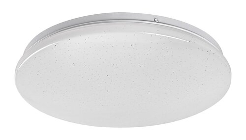 Kulaté stropní svítidlo Vendel se třpytivým efektem se vyznačuje jednoduchým čistým designem, díky kterému může být tento model decentním praktickým kusem nábytku téměř v každém moderním obývacím pokoji či ložnici. Pokud hledáte centrální zdroj světla do místnosti, Vendel může být vynikající volbou se svými velkými rozměry a značnou svítivostí. Bílé tělo svítidla vyrobené z kovu je doplněno o bílé plastové stínítko. Vendel má zabudovaný LED světelný zdroj energetické třídy G, který má výkon 18 W, svítivost 1460 lumenů se stínítkem, 1800 lumenů bez stínítka a opravdu fantastickou životnost: 50 000 hodin! Světelný zdroj s barevnou teplotou 4000 K svítí teplým bílým světlem, proto je toto stropní svítidlo obzvlášť dobrou volbou do obývacího pokoje, kde svým moderním, čistým efektem skvěle podpoří společné aktivity ve večerních hodinách. Rozměry stropního svítidla Vendel: průměr 325 mm, montážní průměr 300 mm a vzdálenost od stropu jen 55 mm.