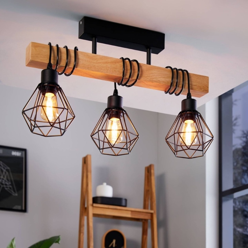 Stropní svítidlo Eglo 44074 TOWNSHEND 5 kombinuje moderní design s industriálním nádechem. Je vybaveno třemi objímkami E27 pro žárovky o maximálním příkonu 3x 60 W. Svítidlo je vyrobeno v kombinaci černé kovové konstrukce a hnědého dřevěného prvku, což dodává interiéru stylový vzhled. Je ideální pro osvětlení obývacího pokoje, jídelny nebo ložnice. Žárovky nejsou součástí balení.
