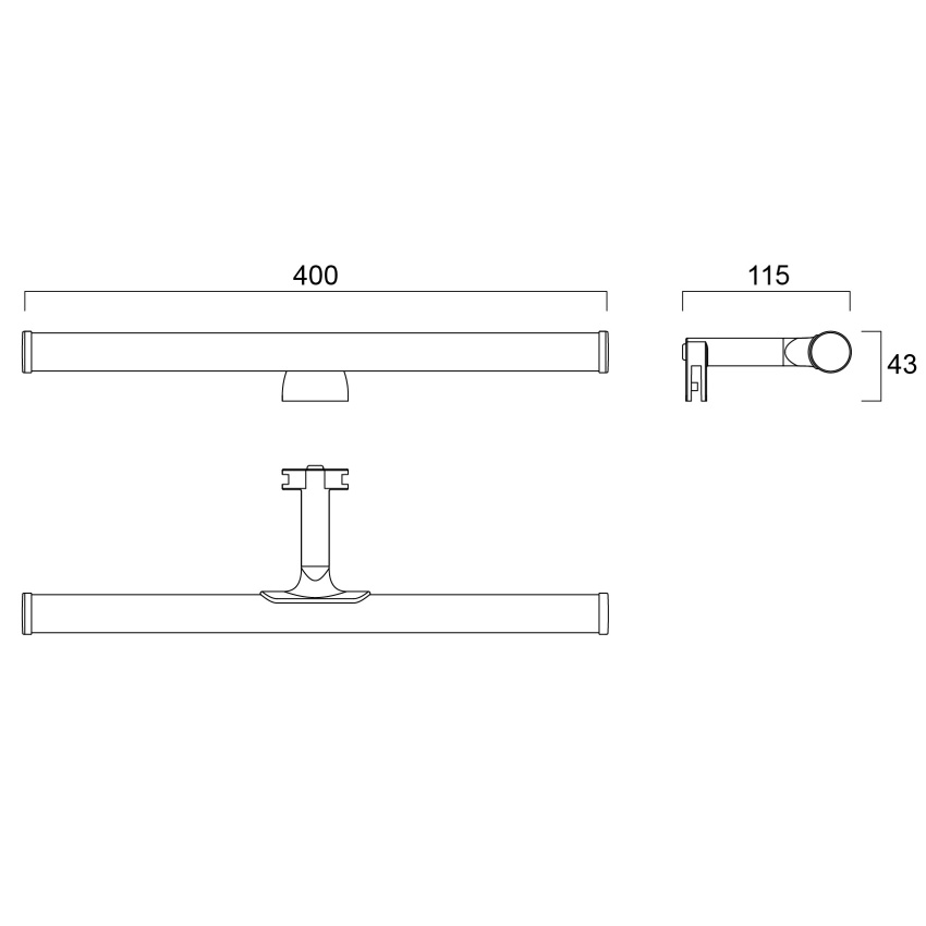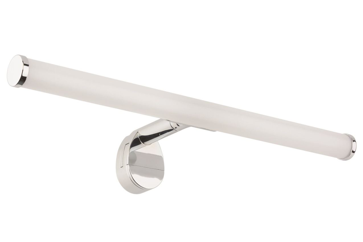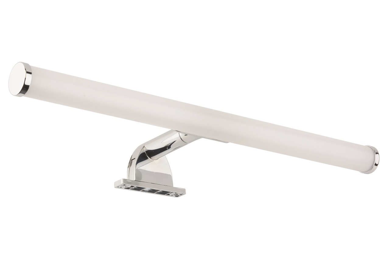 LED zrcadlové / skříňové světlo s celkovou spotřebou energie 640 lumen, úhel paprsku 144 °, IP44, IK03, CRI 80, 4000K barevné teploty, průměrná životnost 25 000 hodin, délka 400 mm. Tvar flétny.