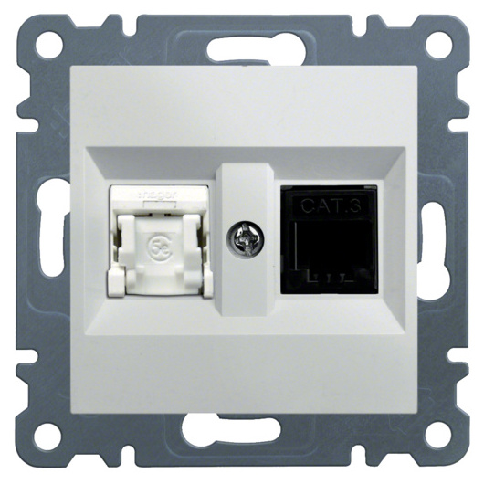 Zásuvka telefonní 1x RJ11 cat.3/ data 1x RJ cat.5e, bílá lesk