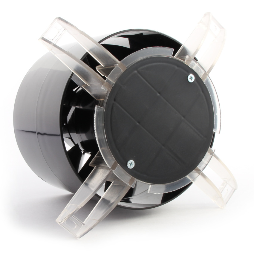 Moderní axiální ventilátor, vhodný pro všestranné použití do koupelen, WC, kuchyní, malých a středních místností. Všechny části jsou vyrobeny z hmoty ABS pro snadné čištění. Výrobek je podsvětlený LED diodou v modré barvě a slouží jako nosič ozdobného skleněného rámečku nebo jej lze použít samostatně.