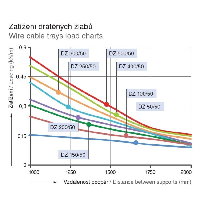 NosnostNosnost žlabů je určena vzdáleností podpěr a lze ji vyčíst z grafů jednotlivých typů žlabů.