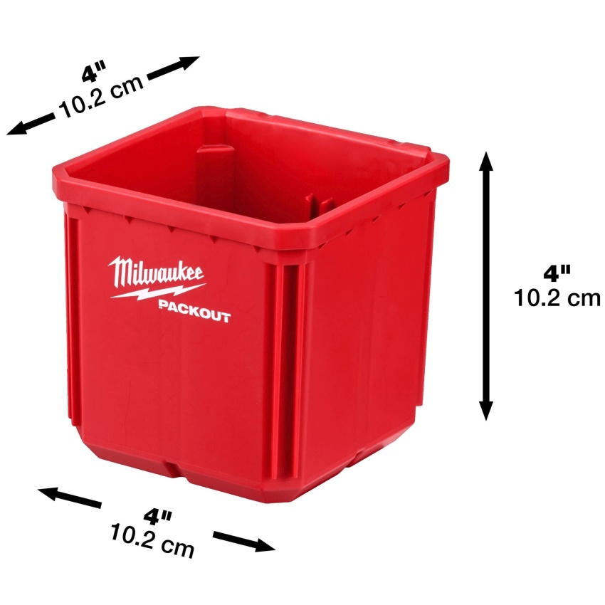 Kontejner 10x10cm Milwaukee pro systém Packout zajišťuje snadný a rychlý přístup ke všem nástrojům.