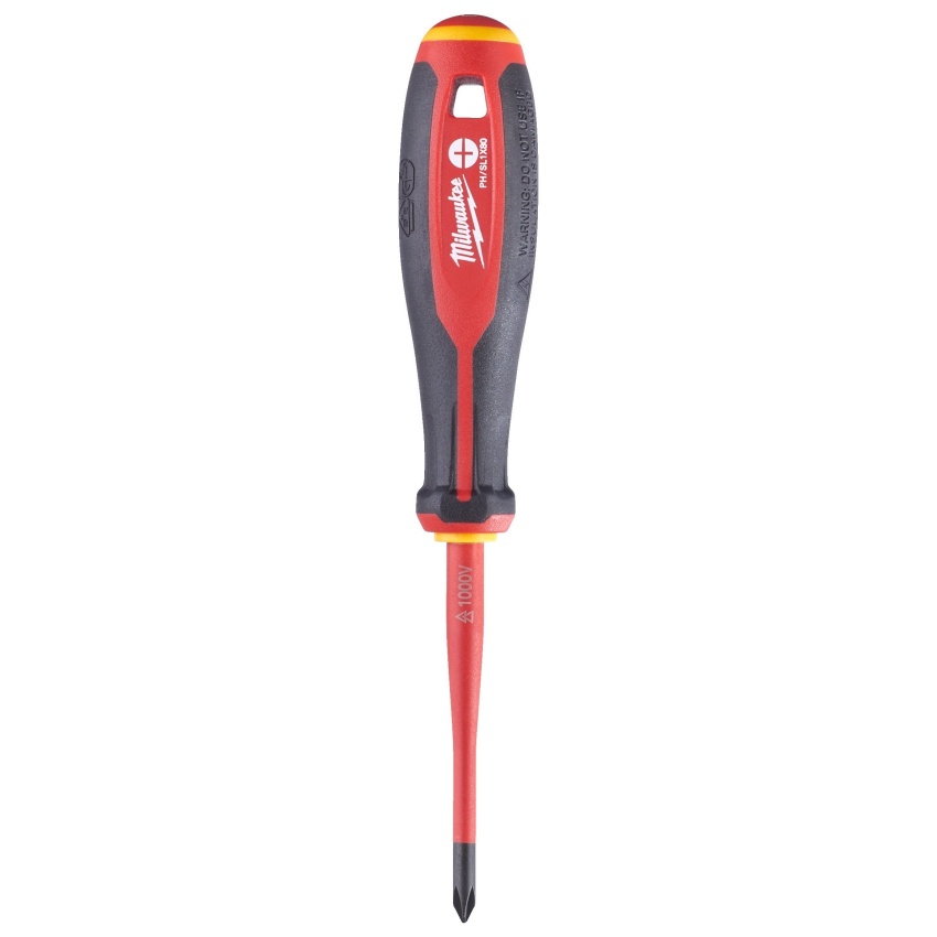 Šroubovák VDE Milwaukee Tri-Lobe PH/SL testováno na 10 000 V a zaručeno na 1 000 V. Tenký průměr dříku pro přístup k nízko položeným šroubům.