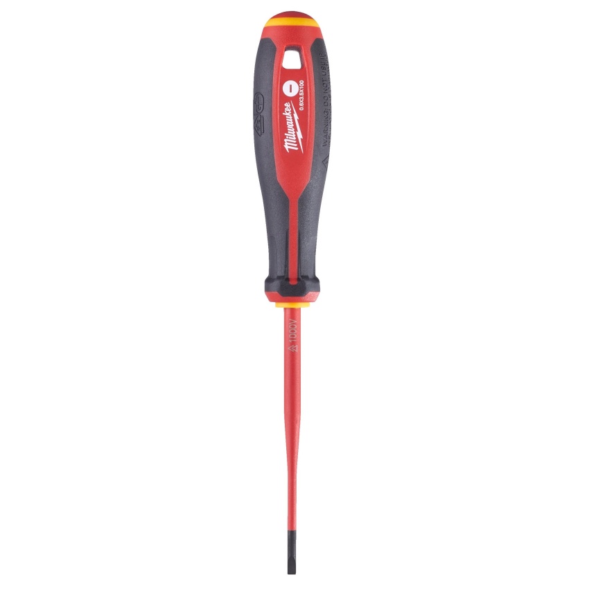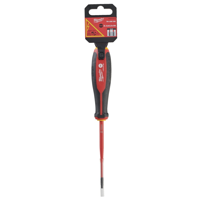 Šroubovák VDE Milwaukee Tri-Lobe SL testováno na 10 000 V a zaručeno na 1 000 V. Tenký průměr dříku pro přístup k nízko položeným šroubům.