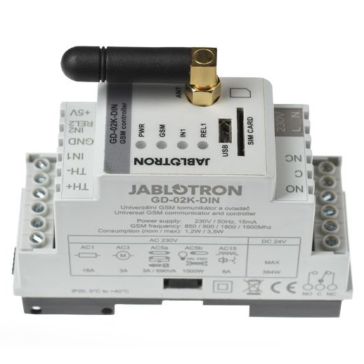 JABLOTRON GD-02K-DIN univerzální GSM komunikátor a ovladač na DIN