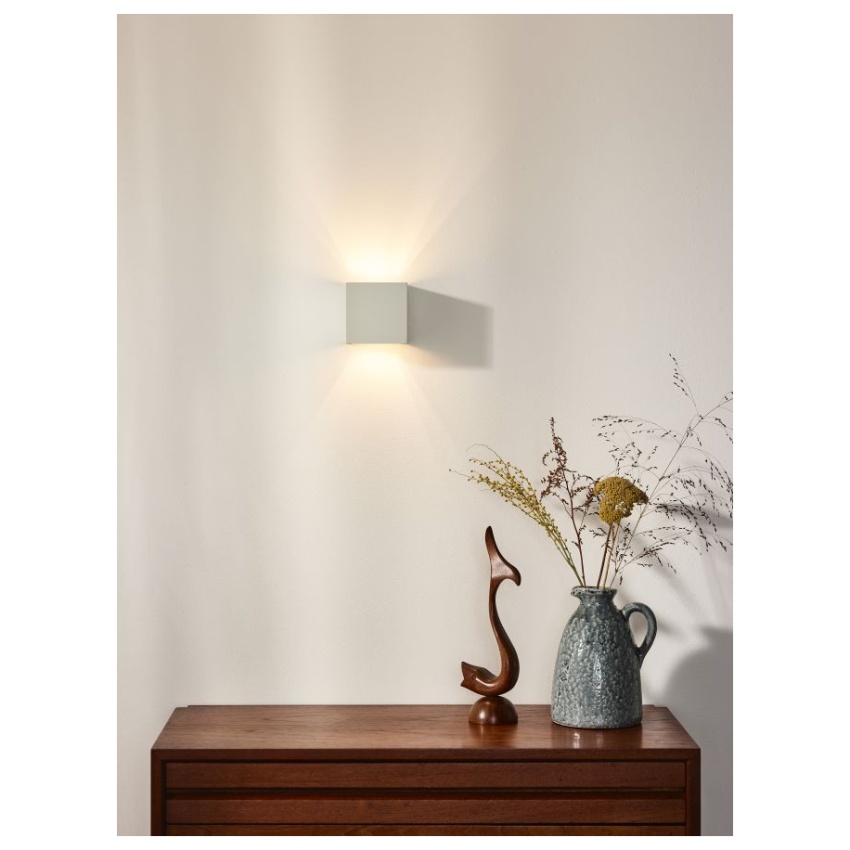 Nástěnné svítidlo vás vprostoru nemusí nijak omezovat. Jedná se o stylový prvek na každé zdi. Zavěste například bílou verzi na bílou stěnu pro jemný efekt nebo si ji vyberte pro kontrast na tmavé stěně. Vytváří měkké světlo, které vytváří široké rozložení světla otvory nahoře a dole. Díky svému modernímu a geometrickému tvaru se tato nástěnná svítidla dokonale hodí do moderního interiéru.