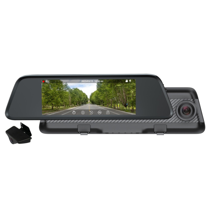 Část odrazové plochy zrcátka slouží zároveň jako velký 4,39" IPS displej, pomocí kterého lze nastavovat všechny důležité funkce, prohlížet pořízené záznamy, sledovat obraz ze zadní kamery - např. při couvání, kdy se obraz automaticky přepne právě na zadní kameru a přidá statické naváděcí parkovací čáry. Na displeji je možné sledovat také obraz pouze z přední kamery. Kamera disponuje tzv. parkovacím režimem, který plní funkci střežení automobilu v době vaší nepřítomnosti.