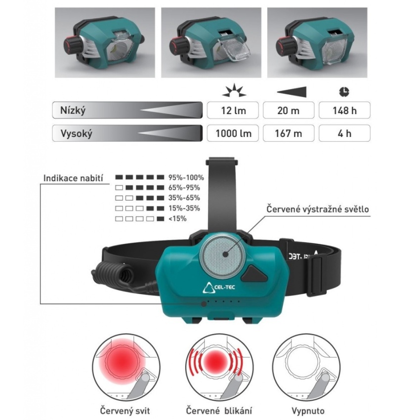 Výkonná nabíjecí čelovka CEL-TEC HL1000