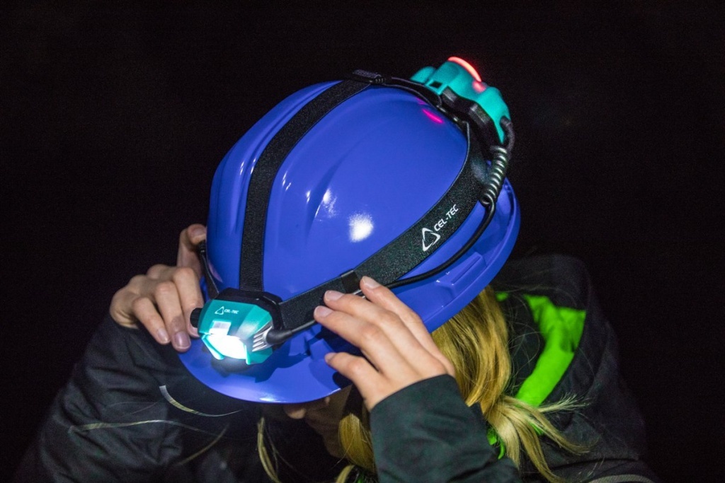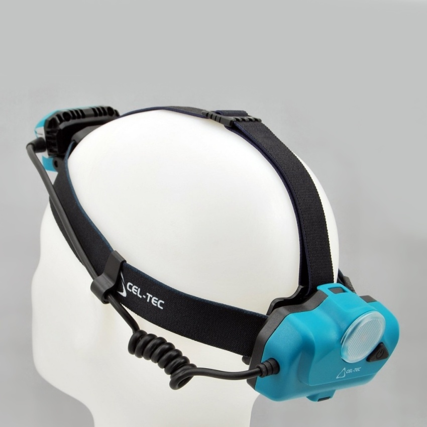 Vysoce výkonná nabíjecí čelovka CEL-TEC HL1000 se zadním bezpečnostním světlem.