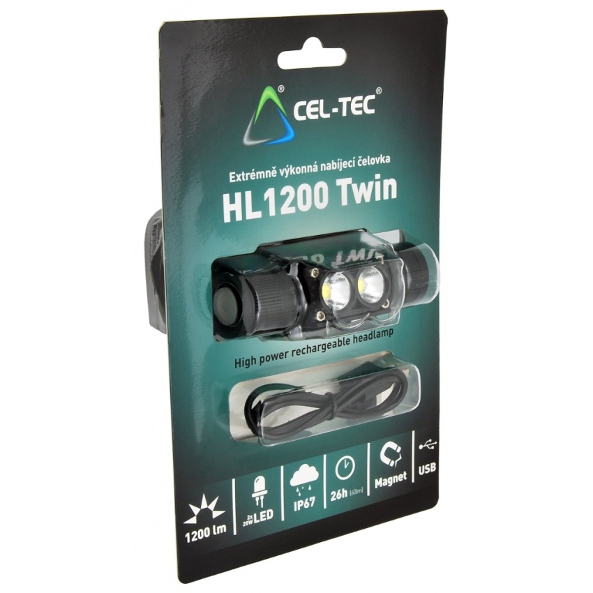 CEL-TEC HL1200 Twin je vysoce výkonná nabíjecí čelová svítilna, která je díky svému provedení a vlastnostem velice univerzální a vhodná např. pro domácí práce, opravy, kempování, turistiku, procházky se psem, rybaření, řemeslné práce atd.