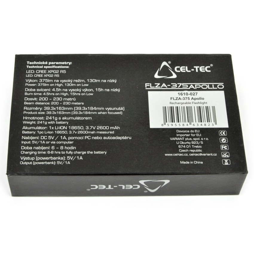 Svítilna CEL-TEC 375 Apollo využívá moderní čip R5 americké firmy CREE ze Severní Karolíny, která je hlavním světovým výrobcem určujícím trend v LED technologii.