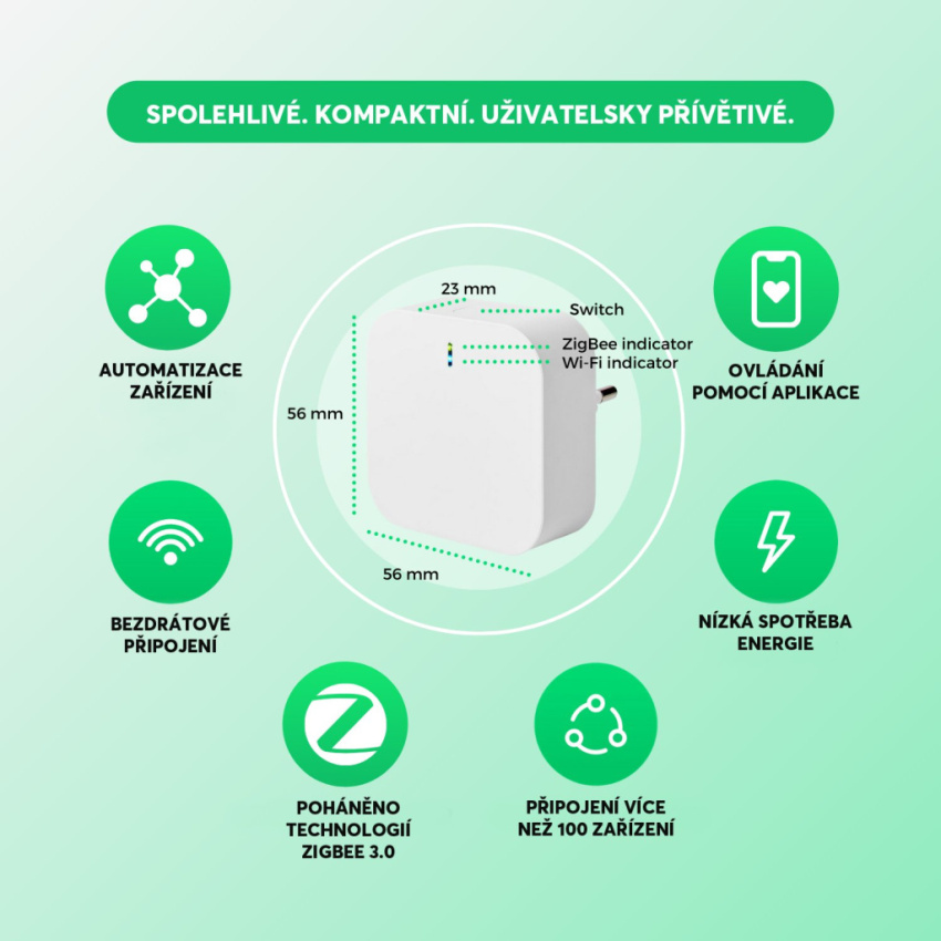 Pomocí centrální jednotky ZigBee můžete rychle rozšířit systém domácí automatizace o bezdrátové produkty, jako jsou čidla zaplavení, teplotní čidla, čidla otevření, čidla pohybu nebo hlavice termostatu.