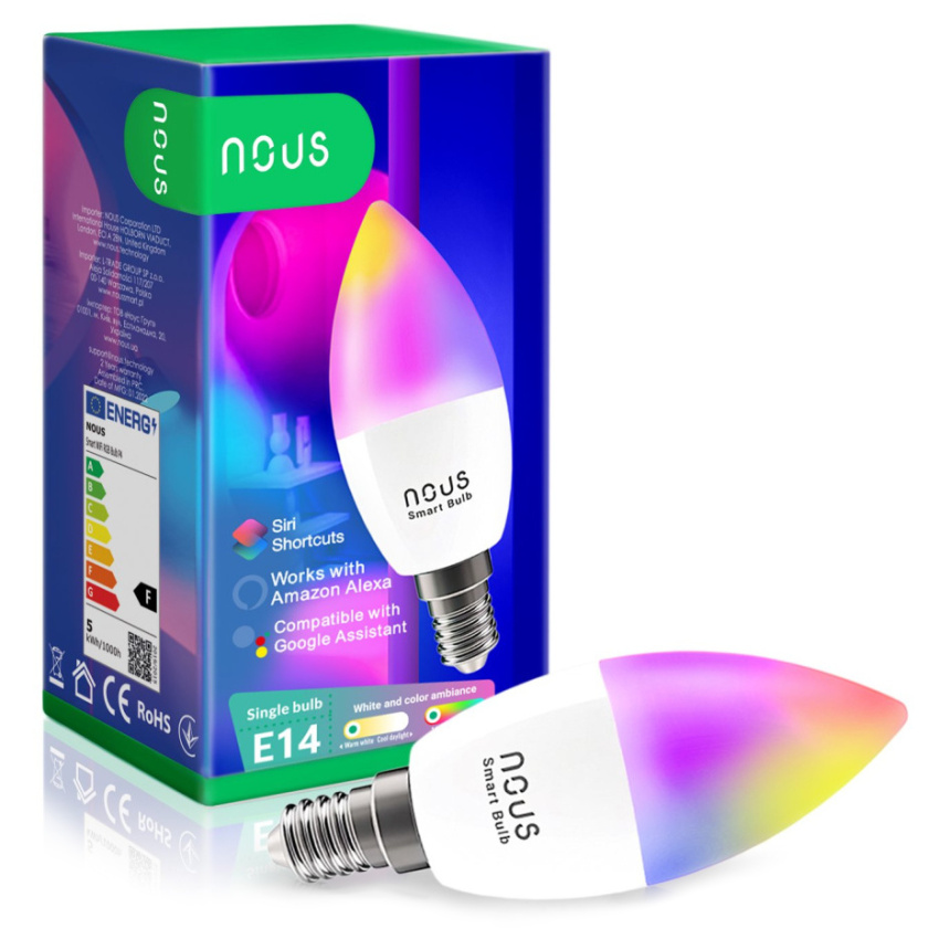 Chytrá žárovka NOUS P4 WiFi Tuya RGB E14 rozšiřuje možnosti moderního interiérového designu. Velice jednoduše a rychle změníte intenzitu, teplotu a barevný odstín osvětlení ve vašem domově.