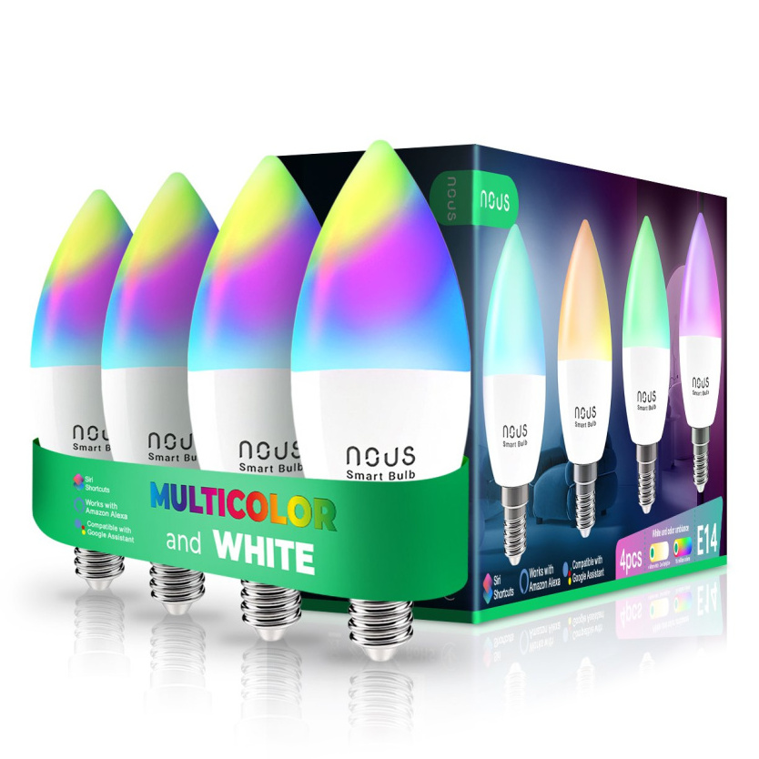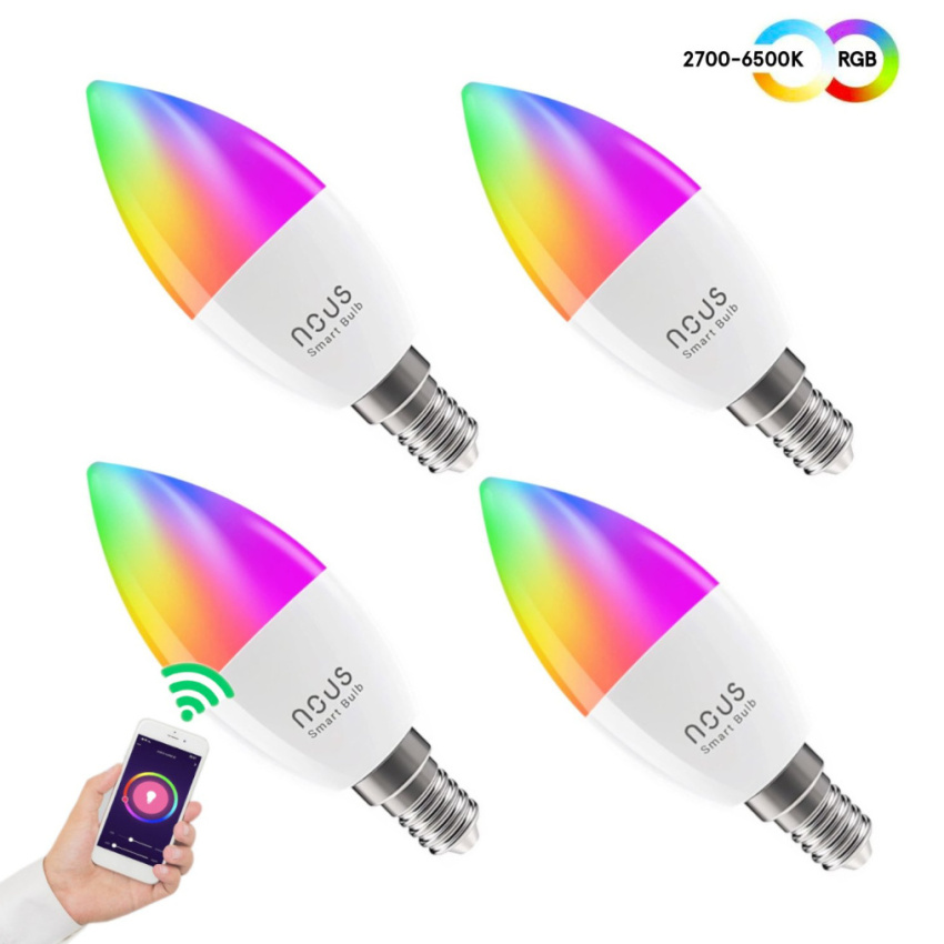 4x chytrá žárovka NOUS P4 WiFi Tuya RGB E14 rozšiřuje možnosti moderního interiérového designu. Velice jednoduše a rychle změníte intenzitu, teplotu a barevný odstín osvětlení ve vašem domově.