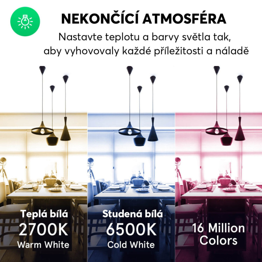 NOUS P8 WiFi má možnost nastavit barevnou teplotu osvětlení v rozmezí 2700 - 6500K, která vám umožní vytvořit jedinečnou atmosféru pro práci, odpočinek, večírek nebo i pro spánek. Den tak můžete začít jasným tonizujícím světlem a v noci odpočívat při zlatavém teplém osvětlení.