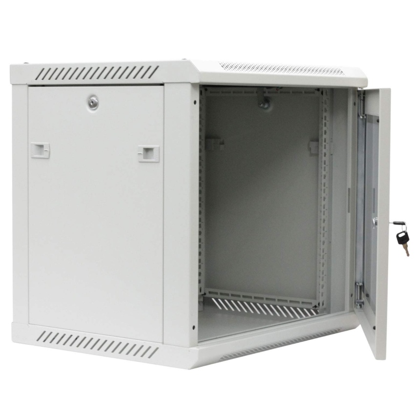 19“ nástěnný datový rozvaděč se skleněnými dveřmi, dodávaný v rozloženém stavu. Rozvaděč je dodáván ve dvou krabicích což usnadňuje transport a manipulaci. Stabilní montovaná konstrukce, skelet z ocelového plechu, šedá prášková barva. Skleněné dveře umožňují okamžitý přehled o stavu zařízení uvnitř rozvaděče. Vhodné pro malé sítě nebo koncová místa velkých sítí.
