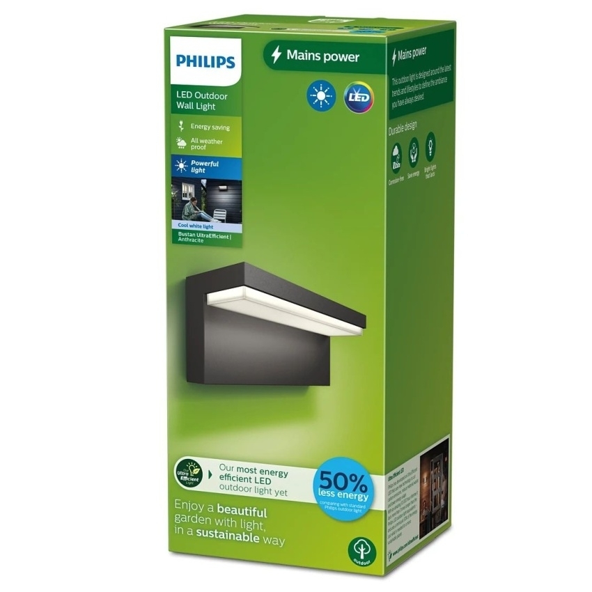 Ultra efektivní venkovní svítidla Philips Bustan využívají přelomovou novou technologii, která snižuje emise uhlíku, plýtvání materiálem a spotřebu energie. Neuvěřitelná životnost 50 000 hodin je v porovnání s podobnými venkovními LED svítidly Philips více než dvakrát delší a spotřeba energie je přitom o 50 % nižší. Přesně tohle potřebujeme pro udržitelnější planetu