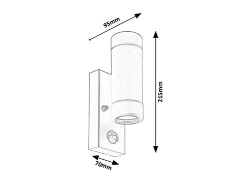 Design vnějšího nástěnného svítidla Medina se snímačem pohybu byl vytvořen v minimalistickém stylu. Matná černá lampa vyrobená z plastu je doplněna průhledným stínítkem; lampa vyzařuje světlo směrem nahoru i dolů. Může dobře posloužit na vnější stěně domu nebo na terase, kde je třeba více zaměřené osvětlení menšího prostoru. Může se používat pouze se dvěma energeticky úspornými zdroji světla do 10 W, závit typu GU10. Rozměry nástěnného svítidla Medina jsou: výška 215 mm, výška 70 mm, vzdálenost od stěny 95 mm. Snímač pohybu detekuje pohyb ze vzdálenosti 8 metrů pod úhlem 90°. Senzor pohybu nepracuje za denního světla, aby šetřil energii. Krytí vnějšího svítidla IP44 zajišťuje, že do něj nemohou proniknout žádné předměty s maximálním průměrem 1 mm a je chráněno proti stříkající vodě z jakéhokoliv směru. Svítidlo se dodává bez zdroje světla.
