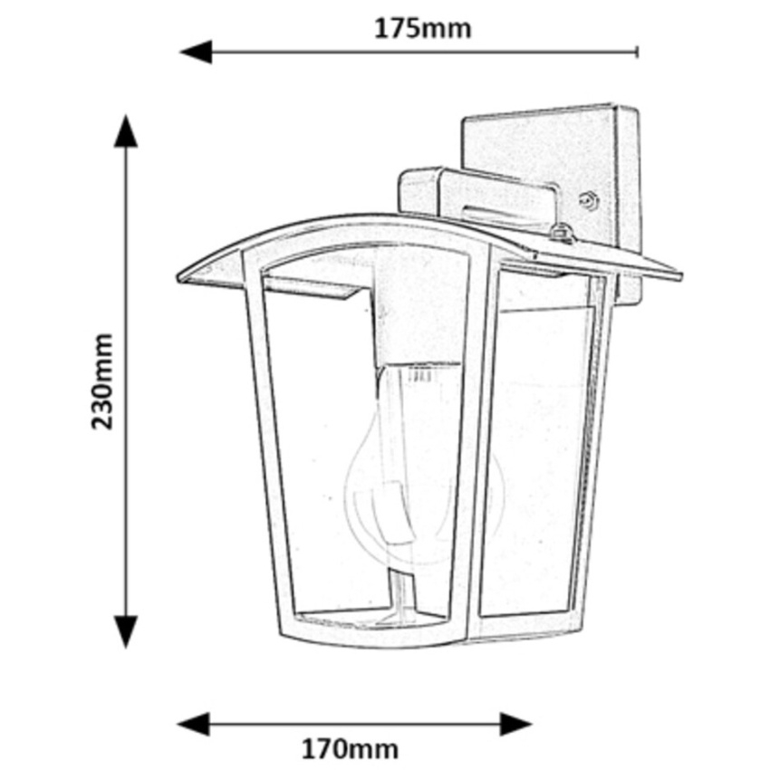 Venkovní nástěnné svítidlo Taverna v klasickém stylu je vyrobeno z hliníku v matné černé barvě a je doplněno o průhledné plastové stínidlo. Může být instalováno na terase nebo kdekoli na vnější stěně vašeho domu, kde je zapotřebí osvětlení pro bezpečný pohyb. Pokud jej umístíte na terasu, použijte jej se žárovkou vyzařující teplé bílé světlo, protože pomáhá vytvářet útulnou, intimní atmosféru. Svítidlo Taverna lze použít s jednou žárovkou o výkonu až 15W. Typ závitu je E27. Rozměry tohoto venkovního svítidla jsou následující: šířka 175 mm, výška 230 mm, vzdálenost od stěny 175 mm. Má krytí IP44, které zajišťuje ochranu proti vniknutí předmětů do průměru 1 mm a proti stříkající vodě z jakéhokoli směru. Toto svítidlo se dodává bez světelného zdroje.